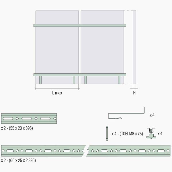 KIT TELAIO PER FISSAGGIO DI UN PANNELLO ORIZZONTALE