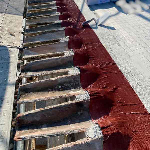 In questo contesto è stata impiegata una banda adesiva per garantire la continuità di tenuta e una corretta gestione dell’acqua in corrispondenza della linea di gronda, integrandosi con la posa tradizionale dei coppi.