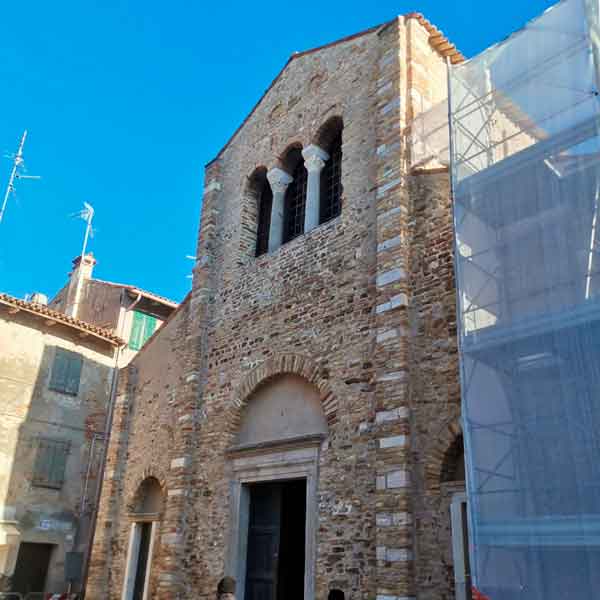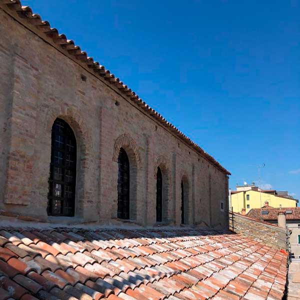 La Chiesa delle Grazie di Grado è un edificio di origine altomedievale, caratterizzato da murature in laterizio e coperture tradizionali in coppi, inserito in un contesto urbano stratificato e delicato.