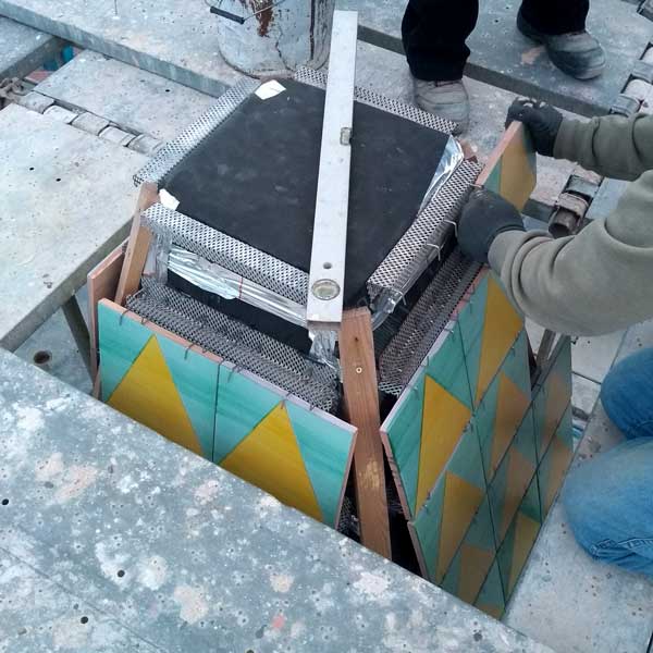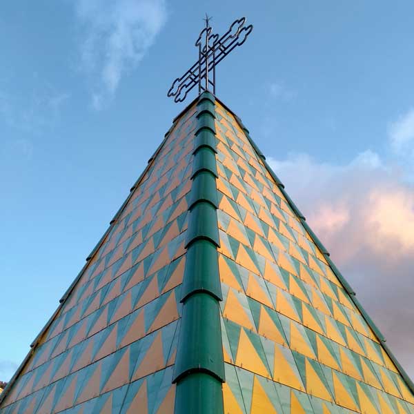 Per una perfetta rifinitura della cuspide della nuova guglia del Duomo di Monreale ci siamo occupati della progettazione e della realizzazione di un sistema di ganci a scomparsa su misura, ancorati a correnti metallici in lamiera forata, stirata e zincata, a forma di U (listello Uno), che ha permesso il corretto alloggiamento dei mattoni maiolicati di dimensione cm 25 x 25.