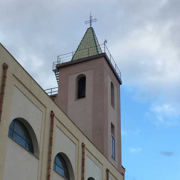 La torre campanaria, invece, fu un’aggiunta relativamente recente: solo a metà del secolo scorso, infatti, si decise di sostituire il vano aperto, contenente delle piccole campane, con una guglia svettante che, tuttavia, rimase a lungo grezza, nonostante fossero già stati presentati più progetti di copertura con maioliche colorate.