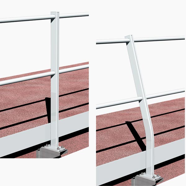 • Il parapetto deve sostenere un carico minimo di servizio Fmin=300N/m (da moltiplicare per la distanza in metri fra gli assi di due montanti successivi applicato orizzontalmente alla sommità del montante e nei punti meno favorevoli lungo il corrimano.