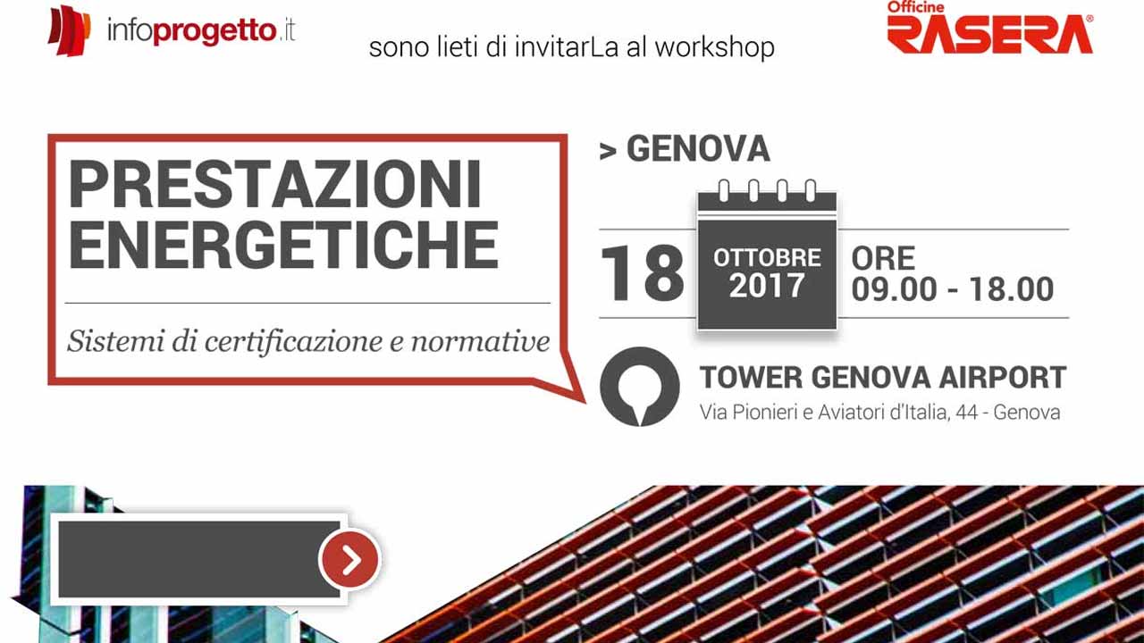 Officine Rasera vi invita mercoledì 18 ottobre 2017 a Genova in occasione del convegno “PRESTAZIONI ENERGETICHE – Sistemi di certificazione e normative”.