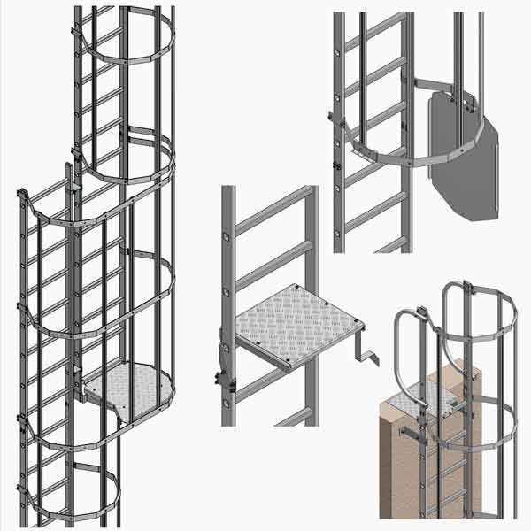 Le scale vengono realizzate con moduli in alluminio completi di montanti verticali e pioli antiscivolo.