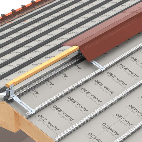 • tegole su orditura singola realizzata con listello “UNO”, GRIGLIA di gronda e sottocolmo a rotolo MICROTEC400;