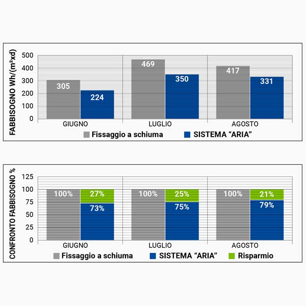 Dai dati raccolti emerge che il Sistema "ARIA" garantisce prestazioni superiori in termini di regolarità della ventilazione e riduzione del carico termico, pur con uno spessore complessivo inferiore rispetto alle stratigrafie tradizionali.
