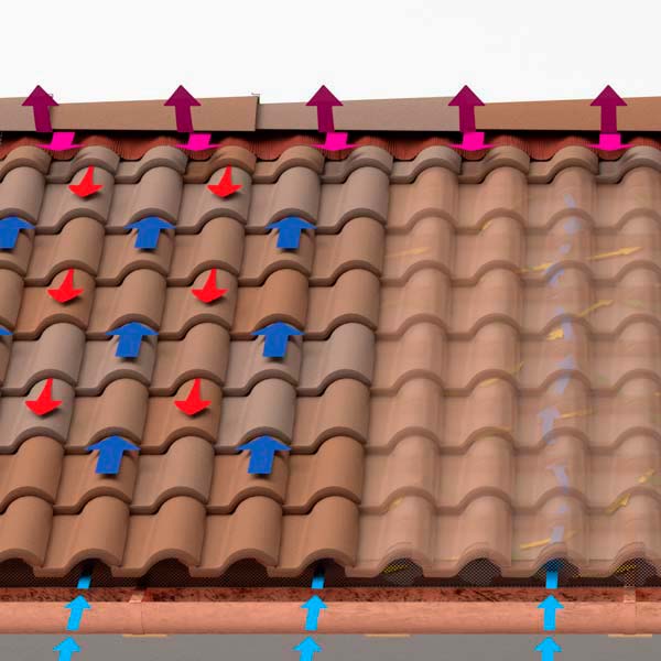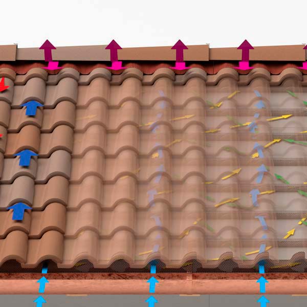 • tegole su doppia orditura di listelli in legno, GRIGLIA di gronda e sottocolmo COLMOWINGS;